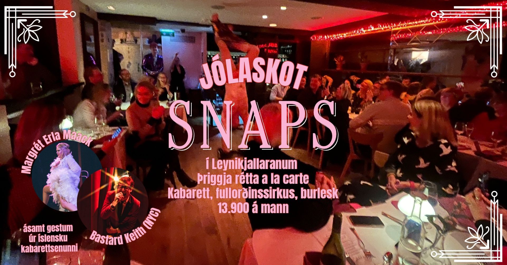 Í leynikjallaranum á Snaps verður boðið upp á jólaveislu fyrir næstum öll skynfærin. Þriggja rétta a la carte seðill ásamt hlaðborði skemmtiatriða og kokkteilaseðill Snaps skartar sínu fegursta. Margrét Erla Maack sér um matreiðslu skemmtiatriða ásam hinum sjóðheita Bastard Keith frá New York. Auk þeirra bregða á leik mismunandi gestir hvert kvöld úr íslensku kabarettsenunni.